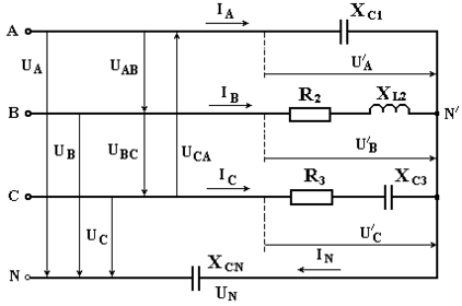 4 Розрахунок трифазного ланцюга при сполуці приймача в зірку