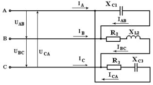 5 Розрахунок трифазного ланцюга при сполуці приймача в трикутник