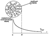 В основі ідеї об'єднання різних взаємодій лежить залежність констант, слабкої електромагнітної й сильної взаємодій від відстані. З мал.1,3 видно як з'являється така залежність. На мал. 1 показаний механізм екранировки електричного заряду(*)електрона. Причина екранировки полягає в наступному: електрон може випускати віртуальні фотони, які у свою чергу можуть перетворюватися в електрон - позитронні пари e + e - , пари м+ м-м-, пари мезонів р+ р-р-, K+K- і т.д. У результаті взаємодії негативно зарядженого електрона з віртуально, що утворяться парами, часток відбувається їхня поляризація (поляризація вакууму). Притягання між протилежно зарядженими частками приводить до екранировки негативного заряду вихідного електрона позитивно зарядженими e+, м+, р+-мезонами, що розташовуються переважно ближче до електрона. Тому, при наближенні пробного заряду до електрона, він буде почувати розподіл поля віртуальних часток. Таким чином величина обмірюваного заряду буде залежати від відстані між пробною часткою й електроном. Це називається у квантовій електродинаміці екранировкою електричного заряду. Теоретичні розрахунки показують, що зі зменшенням відстані величина спостережуваного заряду росте, що й приводить до збільшення константи електромагнітної взаємодії.