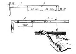 Инструмент МБ-2 предназначенный для снятия изоляции с двужильных плоских проводов с одновременным разрезанием перемычки между ними, выполняется в виде клещей с двумя ручками.