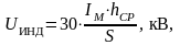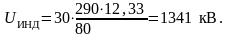 - величина индуктированных напряжений, кВ;