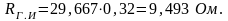 Для заданного тока и по величине расчётного удельного сопротивления примем значение импульсного коэффициента α = 0,32, найденного путём интерполяции. Определяется импульсное сопротивление каждого луча: