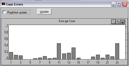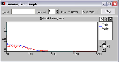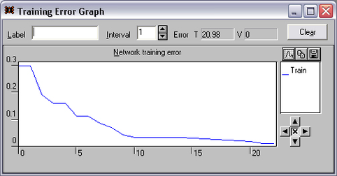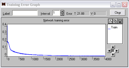 Количество обучающих данных было 120 измерений, что в 5 крат больше количества связей в двухслойном персептроне с 3 нейронами на каждом слое. Количество эпох обучения равнялось 100 в один период установления весов.