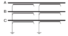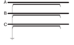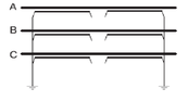 Рис 2.6. Схема соединения экранов группы из трех однофазных кабелей в случае, когда экран разделен на секции, заземленные один раз.