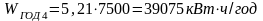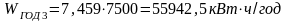 число часов работы утилизационной установки в году, Т=7500 ч/год;
