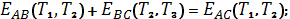 Правило адитивності показів за матеріалами. Якщо для вимірювання різниці температур (Т1 - Т2) існує деяка послідовність термоелектродних матеріалів А - В - С, то справедливі такі співвідношення: