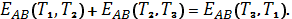 Правило адитивності показів за температурою. Якщо є зростаюча послідовність температур ізотермічних просторів Т1 > Т2 > Т3, то при вимірюванні їх термопарою з термоелектродами А - В, діє таке правило адитивності: