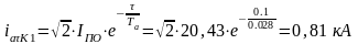 Где - ударный коэффициент принимается для элементов или части энергосистемы; - значение постоянной времени затухания апериодической составляющеё тока КЗ.