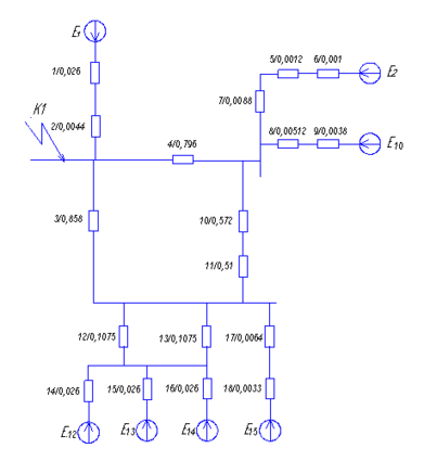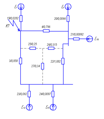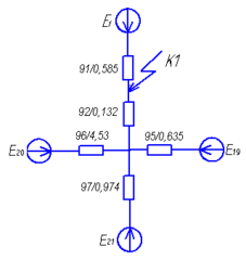 1. Расчёт токов симметричного трехфазного короткого замыкания в точке К1