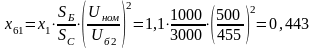 U б3 = U б1 /К Т2 = 110*500 /121 = 455 кВ;