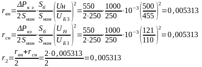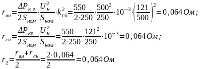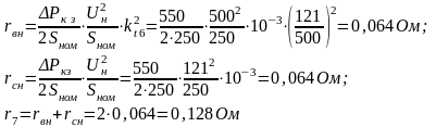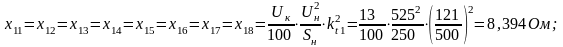 Расчет сопротивлений трансформаторов:
