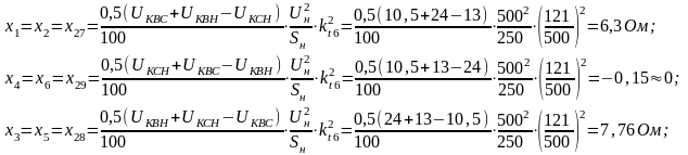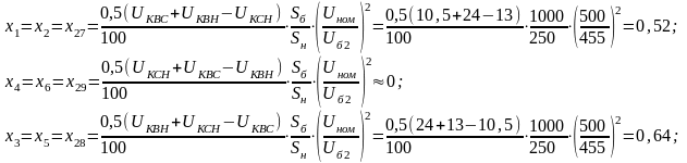 1.2.1 Определение реактивных сопротивлений элементов