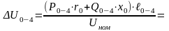 Определяется расчетная индуктивная нагрузка на участках линии по формуле, аналогичной (3.1). Задаемся удельным индуктивным сопротивлением проводов линии Х0= 0, 4 Ом/км. Рассчитываем составляющую потери напряжения в реактивных сопротивлениях линии по формуле: