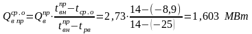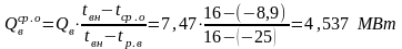 Тепловая нагрузка на вентиляцию для средне-отопительного режима