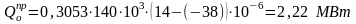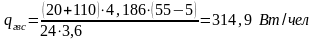 qo=90-2∙tр.о=90-2∙(-38)=166 Вт/(м2∙чел) – удельный тепловой поток;