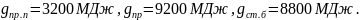 - годовое потребление газа на бытовые нужды, в банях и в прачечных соответственно.