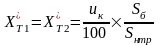 Расчётные значения напряжения к.з. обмоток трансформаторов: