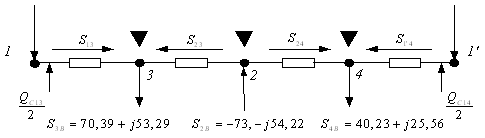 При расчёте замкнутой сети сначала определим предварительно (без учёта потерь) распределение мощностей: