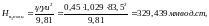 где ψ = 0,45 – коэффициент напора, определяется по рис. 4.16, γ=1/ρВ=1/0,972=1,029кг/м3 – удельный вес сушильного агента в конце установки при t = 90 оС, u=83,5 м/сек – окружная скорость ротора, из табл. 5.