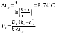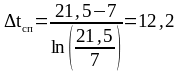 tср –средне логарифмическая разность температур между паром и водой, °С