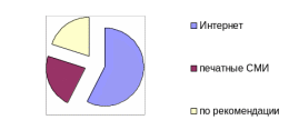 На основе представленной диаграммы можно сделать вывод о необходимости создания собственного сайта страницы, в связи с тем, что 57.5% опрошенных узнают об отеле через Интернет, в то время как через рекламу в печатных СМИ только 22.5% и 20% по рекомендации.