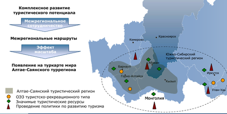 Важнейший элемент реализации макрорегионального сценария - выстраивание взаимодействия с соседними субъектами РФ для формирования Алтае-Саянского туристического региона.