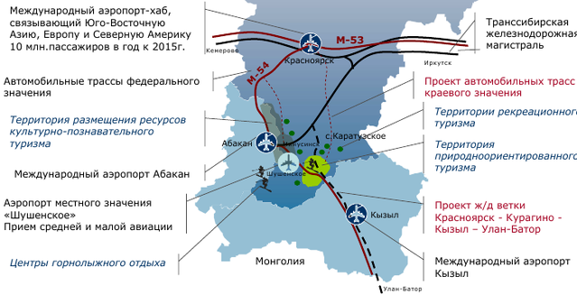 Железнодорожный транспорт: строительство ж/д ветки Красноярск-Кызыл.