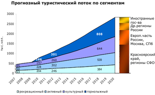 Таким образом, в среднесрочной перспективе туристический поток на территорию юга Красноярья вырастет в 2 раза, а в долгосрочной – более чем в 6 раз (рис. 9).