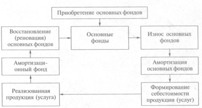 Амортизация — это денежное возмещение износа основных фондов путем включения части их стоимости в затраты (себестоимость) на выпуск продукции или услуг. Отчисления, которые предназначаются для возмещения выбывающих (изнашиваемых) основных фондов, называются амортизационными отчислениями. Они предназначены для финансирования затрат, связанных с простым и расширенным воспроизводством основных фондов предприятия.5