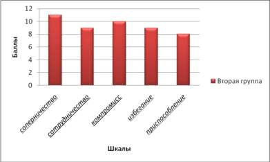 Индивидуальные данные, полученные по методике «Оценка поведения в конфликтной ситуации» К. Томас представлены в Приложении 5 и 6.