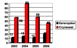 Порівняльна характеристика кількості дітей у спортивних гуртках у 2003-2006 роках