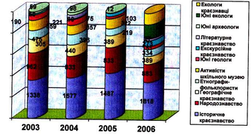 Кількість учнів є краєзнавчих гуртках за період 2003 - 2006 років