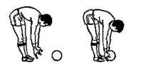 Ловіння м'яча знизу використовується для оволодіння м'ячами, що котяться, що опускаються і низько (до рівня грудей) летять назустріч воротареві. У підготовчій фазі воротар нахиляється вперед і опускає руки вниз (Рис. 9). Долоні повернені до м'яча, пальці трохи розставлені. Руки не повинні бути надмірно напружені. Ноги зімкнуті, прямі або небагато зігнуті. У момент зіткнення м'яч підхоплюється кистями знизу і підтягується до живота. Часто в процесі гри приходиться здійснювати ловіння м'ячів в стороні від воротаря. У цьому випадку необхідно попередньо переміститися убік напрямку руху м'яча [17,72].