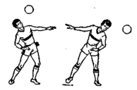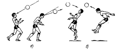 Рис. 3. Удар по м'ячу головою (серединою чола): а – без стрибка; б – у стрибку