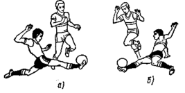Рис. 8. Відбирання м'яча: а – у шпагаті; б – у підкаті