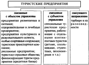 Таким образом, под туристским предприятием следует понимать такую организационно-хозяйственную единицу, которая посредством объединения необходимых производственных средств (труда, денег, земли и др.) осуществляет подготовку, исполнение и предоставление услуг туристам, используя для этого весь арсенал существующих методов управления. Туристские предприятия, создавая, оказывая и предлагая свои услуги, служат для удовлетворения туристских потребностей.