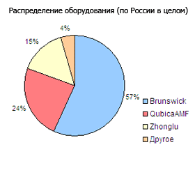 | Под оборудованием QubicaAMF подразумевается не только новая продукцию компании, но и оборудование AMF, которое было поставлено в клубы до объединения компании AMF с компанией Qubica. Под другим оборудованием, охватывающем 5% рынка боулинга России, имеется в виду продукция Yangji Vision, Dacos, Modern Technology, Vollner, Switch Bowling и др. |