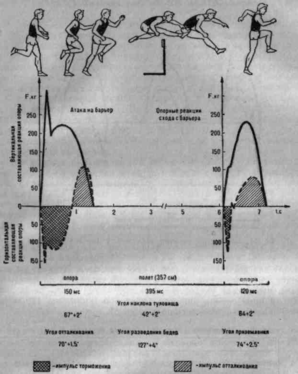 Отдельные кинематические и динамические параметры техники преодоления барьера приведены на рис. 2.
