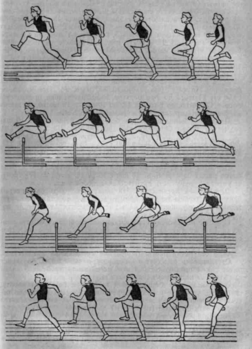 Высота препятствий в беге на 400 м (91,4 см у мужчин и 76,2 см у женщин) позволяет преодолевать их без заметных колебаний ОЦМТ в вертикальном и переднезаднем направлении; наклон туловища барьериста при преодолении препятствия близок к беговому.