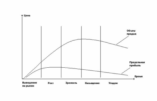 Жизненный цикл продукта описывает эволюцию продукта с момента его первоначального появления на рынке до полного прекращения реализации. Любой продукт, какими бы замечательными потребительскими свойствами он ни обладал, рано или поздно вытесняется с рынка другими более совершенными. Среди продуктов есть долгожители и однодневки, но нет, и не может быть, вечного продукта, т.к. со временем спрос на него падает и получаемая от реализации прибыль настолько уменьшается, что дальнейшая торговля им становится экономически невыгодной.