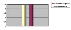 На Рис 3 видно, что уровень адаптационного потенциала после однократной статической нагрузки у девушек, занимающихся спортом, выше, чем у девушек, не занимающихся спортом, на 0,28 балла. (р>0,05)