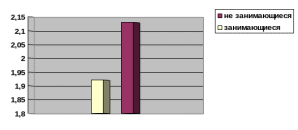 В результате эксперимента выявлено, что уровень адаптационного потенциала у юношей, занимающихся спортом, выше, чем у юношей, не занимающихся спортом на 0,21 балла. (р>0,05)
