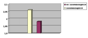 Девушки занимающиеся спортом. = (1,83+.2,33+2,04)/3=2,06 балла