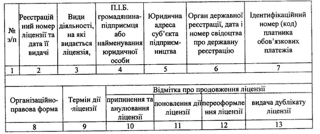 Орган, який видає ліцензії, веде книгу їх обліку, за певною встановленою формою(див.рис 1).