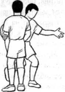 При наведенні на заслін важливо пройти того, що мимо затуляє гравця впритул, плече в плече, різко збільшуючи швидкість. Для цього можна застосовувати дуже простий прийом. При наведенні на заслін нападаючий обіймає партнера ближньою рукою. Торкання партнера рукою не дозволяє захиснику пройти мимо заслону поряд з нападаючим (мал. 5).