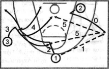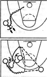 Цікава взаємодія, яка створює ширину атаки і значно утрудняє підстраховування. Може виконуватися як на периметрі, так і поблизу від кільця (мал. 19).