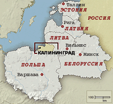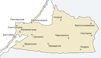 Экономический регион: Калининградская область. Округ: Северо-Западный федеральный округ. Центр – город Калининград (бывший Кенигсберг, основан в 1255 году). Административное деление – 13 районов, 22 города и 5 поселков городского типа. Крупные города области: Калининград, Советск, Черняховск, Неман, Гусев, Балтийск; 1096 сельских населенных пунктов (см. рис. 2). Площадь области – 15,1 тыс. кв. км. (0,1% площади РФ) – одна из самых маленьких территорий России, по плотности населения (63 человекам/м2) занимает третье место. Калининградская область расположена на юго-восточном побережье Балтийского моря и является самой западной территорией России. На севере и востоке на протяжении 280,5 км она граничит с Литовской Республикой, на юге на протяжении 231,98 км – с Республикой Польша, на западе область ограничивает 183,56 – километровое побережье Балтики (см. рис. 1). Максимальная протяженность области с востока на запад составляет 205 км, с севера на юг – 108 км. От Калининграда до польской границы всего 35 км, до литовской – 70 км. Ближайший областной центр России – Псков – отстоит от Калининграда на 800 км, до Москвы – 1289 км.