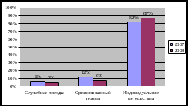Уменьшение общего выездного потока состоялось в виду значительного падения частных путешествий (почти на 17%, или на 1 млн. 193 тыс.чел). Наибольшее падение турпотока состоялось в потоке путешествующих в Польшу (на 65,6| %, или на 1,3 млн.).