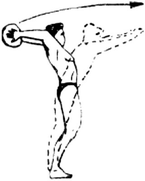 Рис. 12. Толкание набивного мяча одной рукой