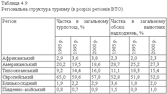 Таблиця 2.2. Регіональна структура туризму (в розрізі регіонів ВТО)